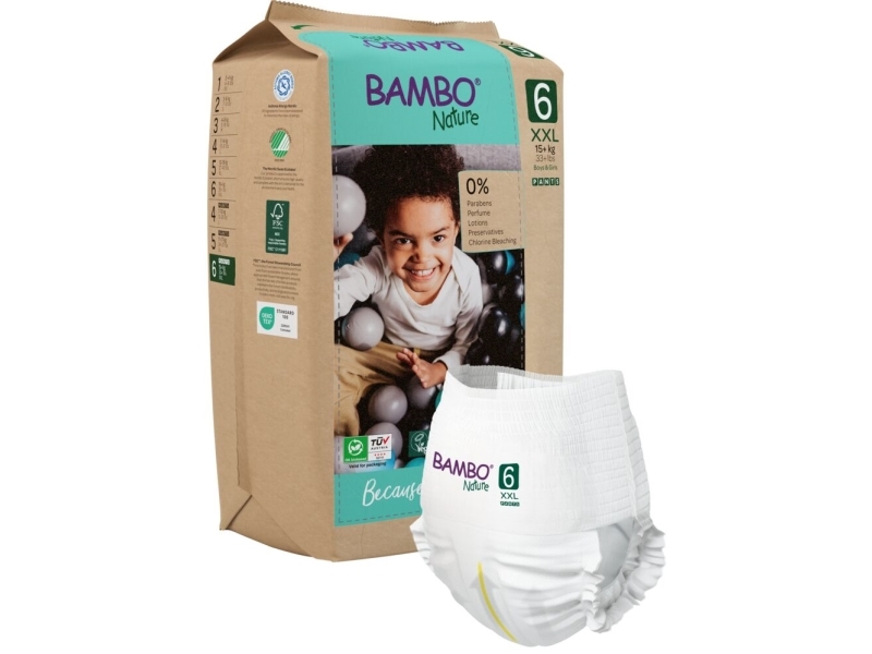 Børneble, bukseble, miljømærket, Bambo Nature Pants, 6, papirspose, paper bag - (5 stk.)
